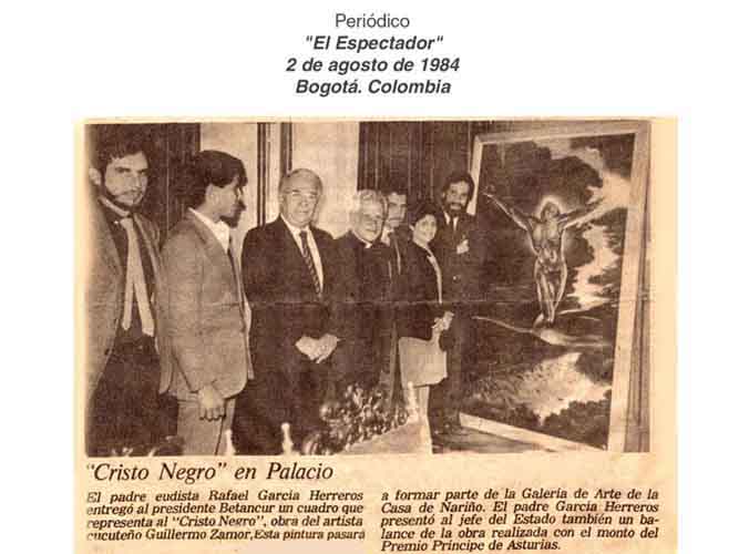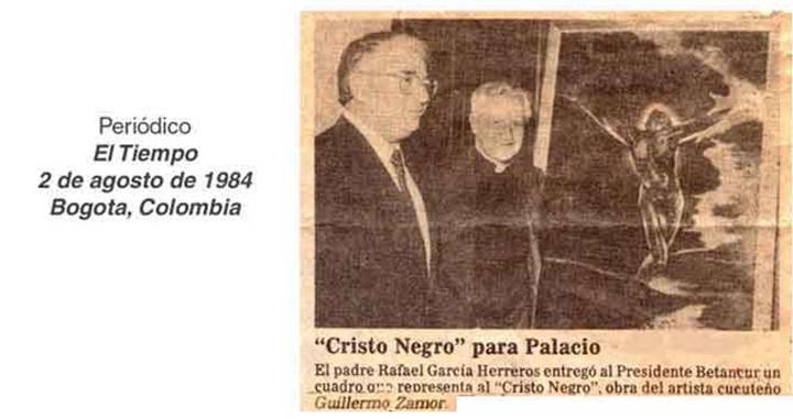 Señor Presidente Permítame dirigirle mi respetuoso saludo aprovechando esta ocasión en que me presento ante Usted para solicitarle su colaboración. Soy un artista colombiano que reside básicamente en Paris desde hace treinta años. En 1984 hice una donación al país, bajo el mandato del Doctor Belisario Betancur con la obra del "Cristo Negro". En un mandato posterior el cuadro fue sacado del Palacio de Nariño y expuesto en el Museo Nacional, del cual fue retirado más tarde, ignorando donde se encuentra actualmente. Debido a que me encontraba en Francia en el momento de la donación fue mi tío materno, el padre Rafael García-Herreros, quien hizo la entrega oficial al presidente Betancur con la condición oral de que el cuadro permaneciera siempre expuesto. Puesto que he recibido varios correos de colombianos pidiéndome información sobre esta obra (que aparece en mi página web www.zamor.com) y que estoy de retorno en Colombia por algún tiempo, quisiera reiterar esa condición inicial conociendo su lugar de exposición. Igualmente quisiera ponerle a su disposición mi obra (que se encuentra actualmente en Francia), con la cual puede realizarse una retrospectiva importante en Colombia, si ella es digna de su interés. Esperando que esta carta llegue a sus manos me despido con todo el respeto que se le es debido por su valor personal y por la alta dignidad de su cargo. Sinceramente