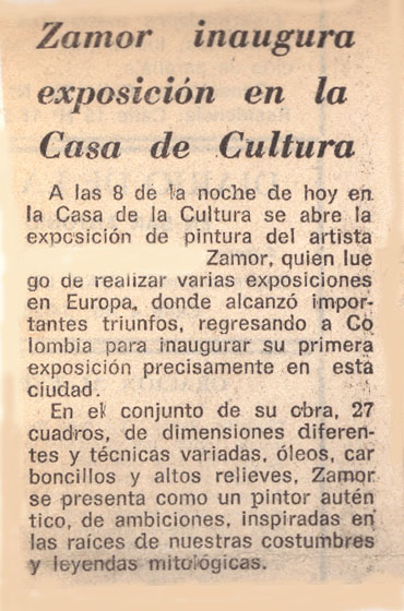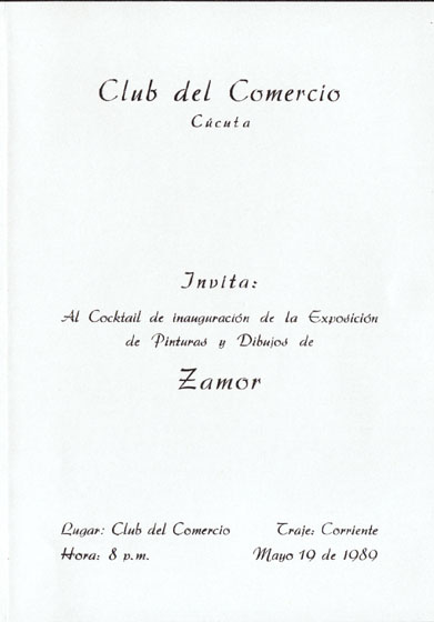 Exposition de Zamor Club del Comercio Cúcuta, Colombie, 1989