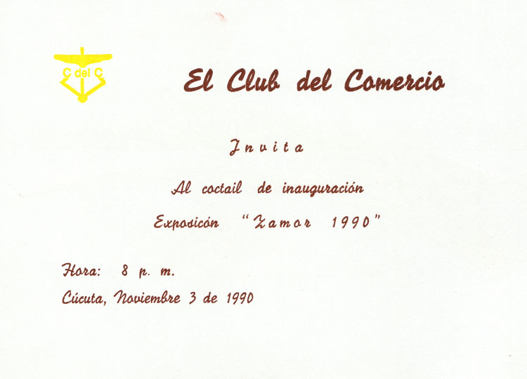 Exposition de Zamor Club del Comercio Cúcuta, Colombie, 1990